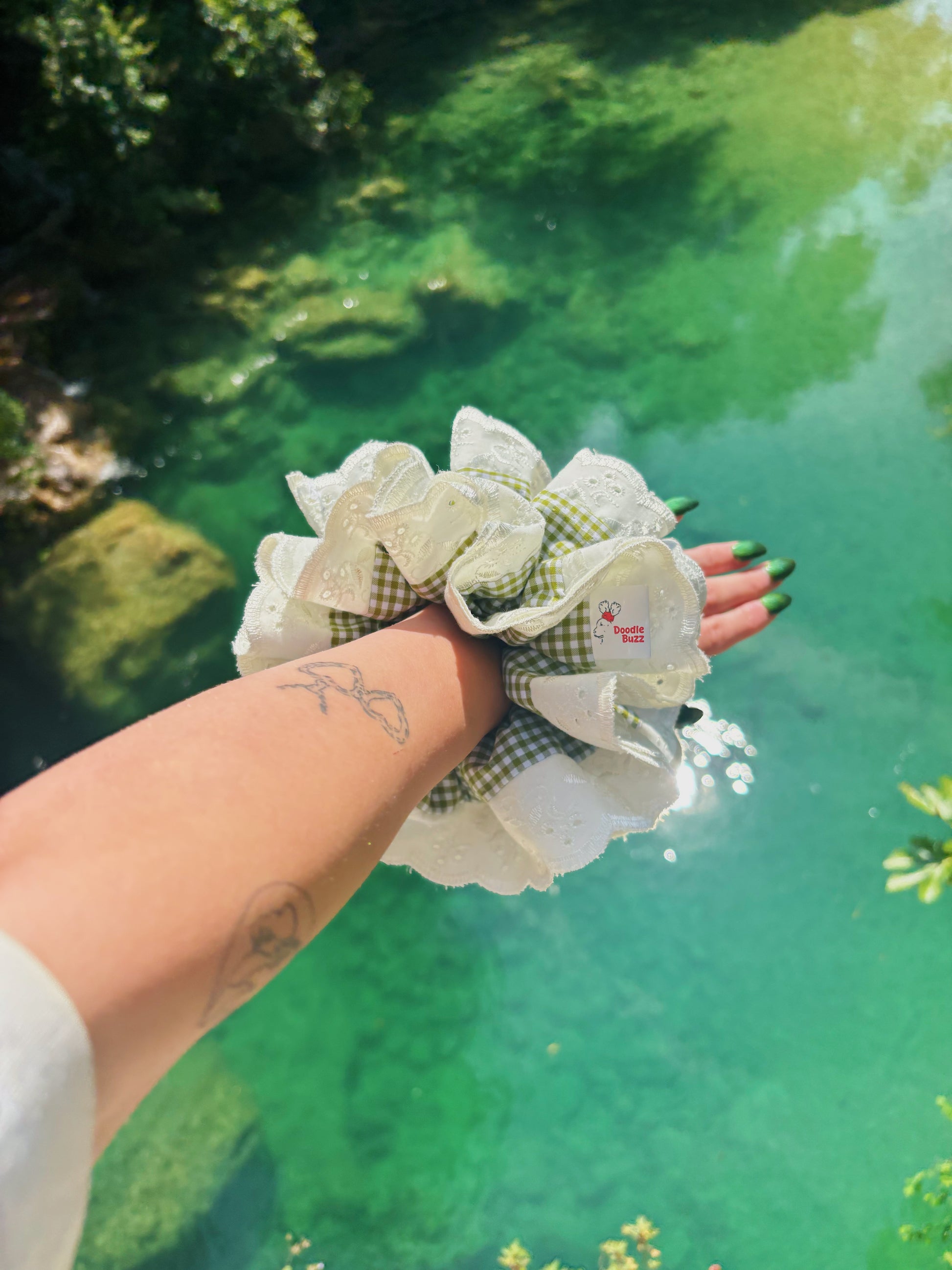 Elevate your everyday style with the Green and White Gingham Regular Doodle Buzz. Featuring a timeless gingham pattern, this scrunchie blends classic charm with versatile functionality. Ideal for adding a refined yet playful touch to your look, it effortlessly secures your hair while complementing any outfit. A sophisticated staple that combines style and practicality.